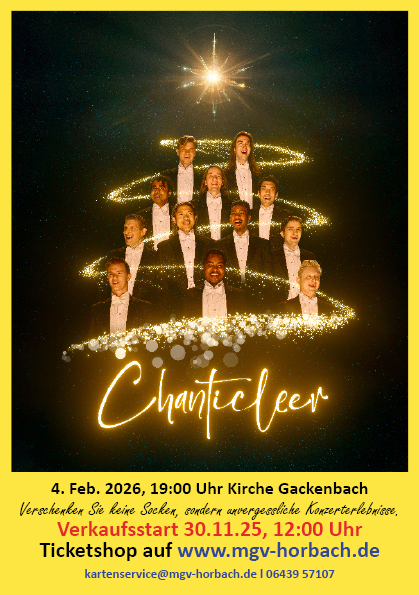 Der Ticketverkauf beginnt am 30. November um 12 Uhr. Ab 30,00 Euro sind Karten über den Ticketshop des MGV Horbach unter https://mgv-horbach.de oder per E-Mail über kartenservice@mgv-horbach.de erhältlich. Auch telefonische Reservierungen sind unter 06439 57107 möglich.