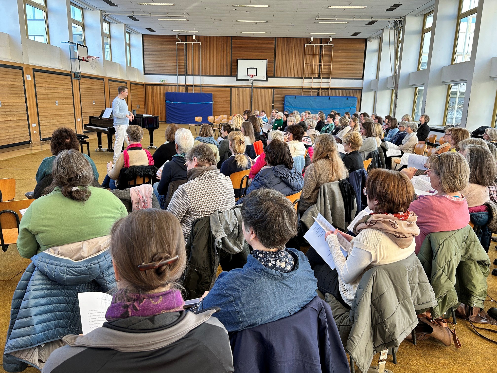 Unter dem Titel ‚Chor-Werkstatt‘ lud die Region I des Chorverbands Rheinland-Pfalz zu einem intensiven Workshop-Tag ins Landesmusikgymnasium nach Montabaur ein und gewann dafür drei profilierte Dozierende aus Berlin und Mannheim. Mit Tristan Meister für den Bereich Männerchor, Ernie Rhein für Frauenchor und Carsten Gerlitz für gemischte Besetzungen knüpfte die Region an frühere Formate an und führte ihre jährliche Tradition qualifizierter Fortbildungen für die heimischen Chöre fort. Die Ausschreibung stieß auf außergewöhnlich hohes Interesse, rund 150 Personen meldeten sich zunächst insgesamt an. Die dann 135 Teilnehmenden nahmen auch längere Anreisen – von bis zu 100 Kilometer – in Kauf.