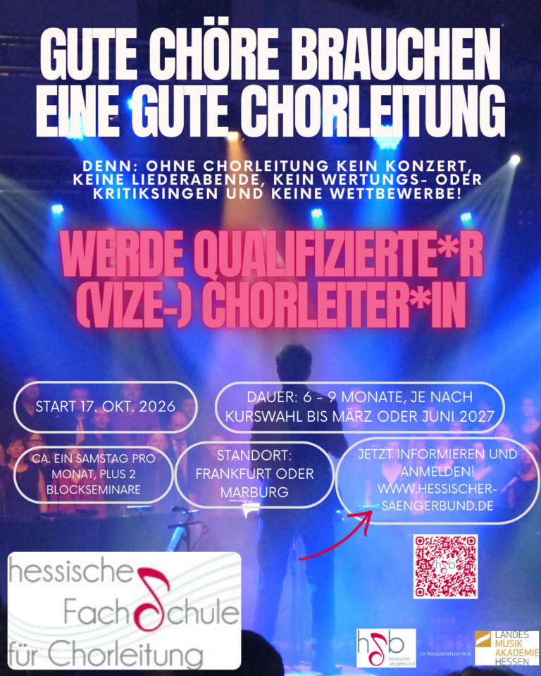 Die Hessische Fachschule für Chorleitung startet am 17. Oktober ins neue Ausbildungsjahr. Anmeldungen sind ab sofort möglich.