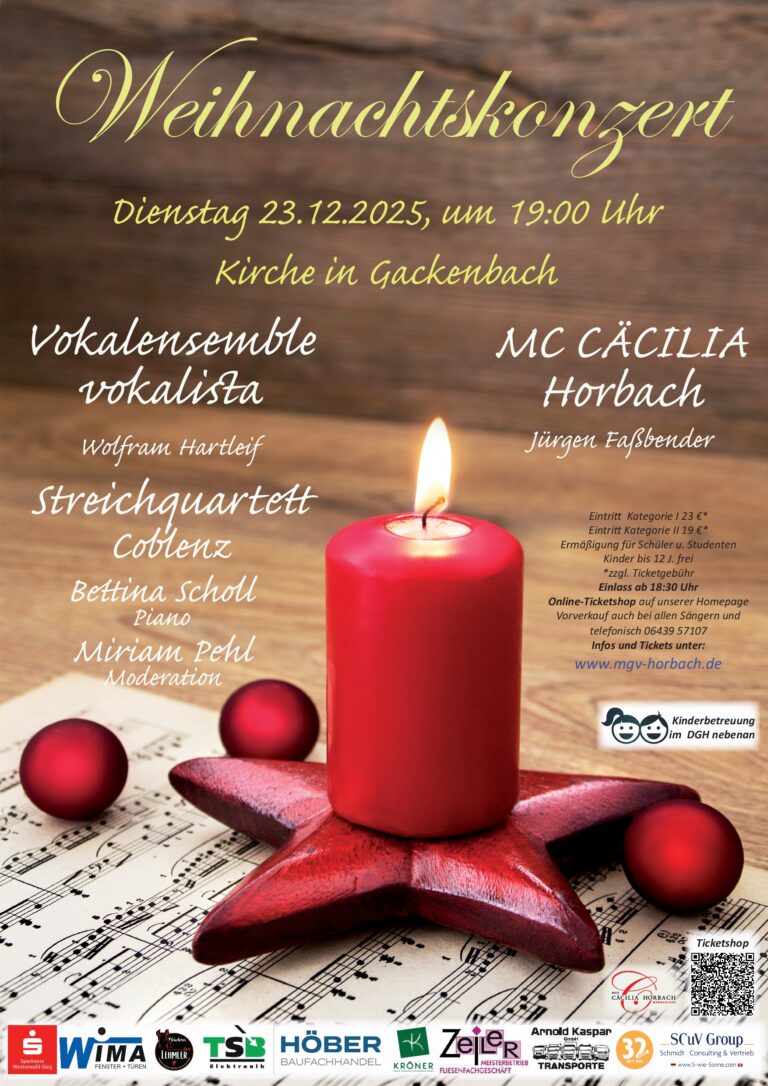Der MGV Cäcilia Horbach lädt am 23. Dezember zum traditionellen Weihnachtskonzert in die Kirche nach Gackenbach ein.