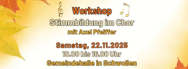 Tages-Workshop zur Stimmbildung im Chor mit dem renommierten Chorleiter Axel Pfeiffer, am 22. November in der Gemeindehalle Schwollen.