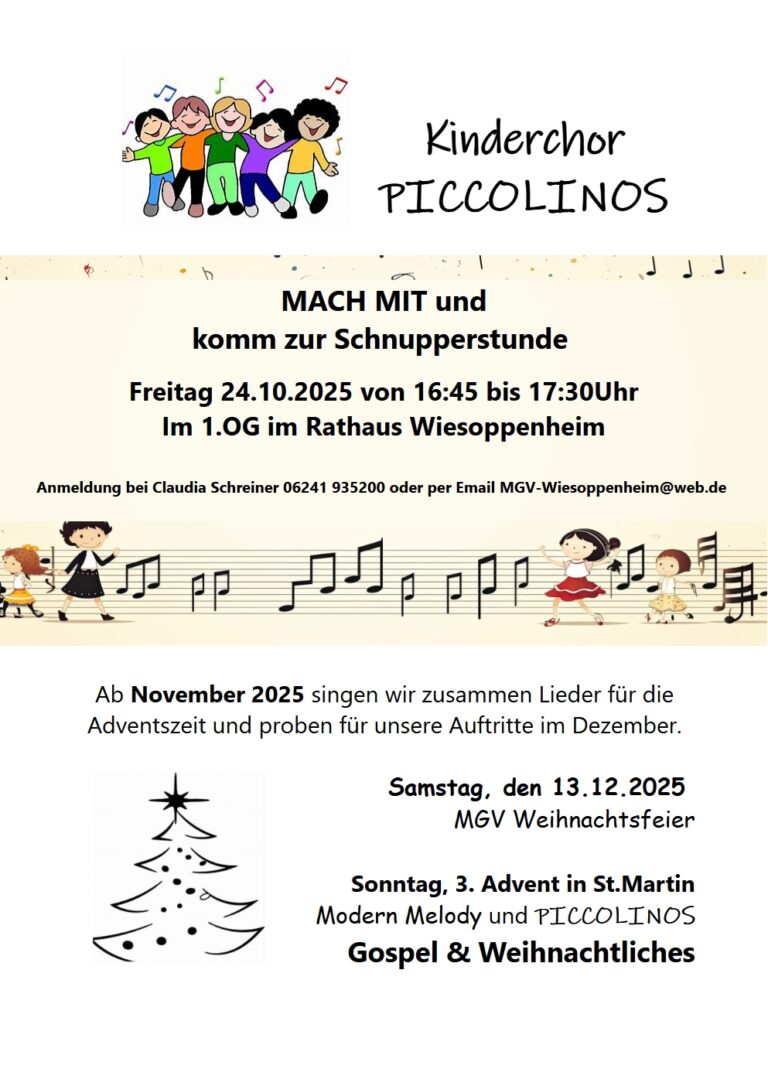 Der Kinderchor Piccolinos aus Worms-Wiesoppenheim sucht neue Stimmen mit Kindern ab fünf Jahren. Los geht's am 24. Oktober.