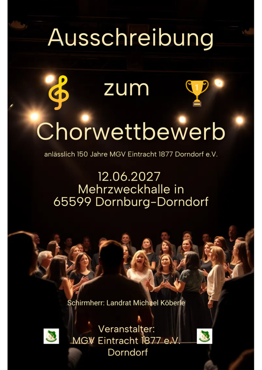 Aus Anlass seines 150-jährigen Bestehens richtet der MGV Eintracht Dorndorf im Juni 2027 einen bundesweiten Chorwettbewerb aus.