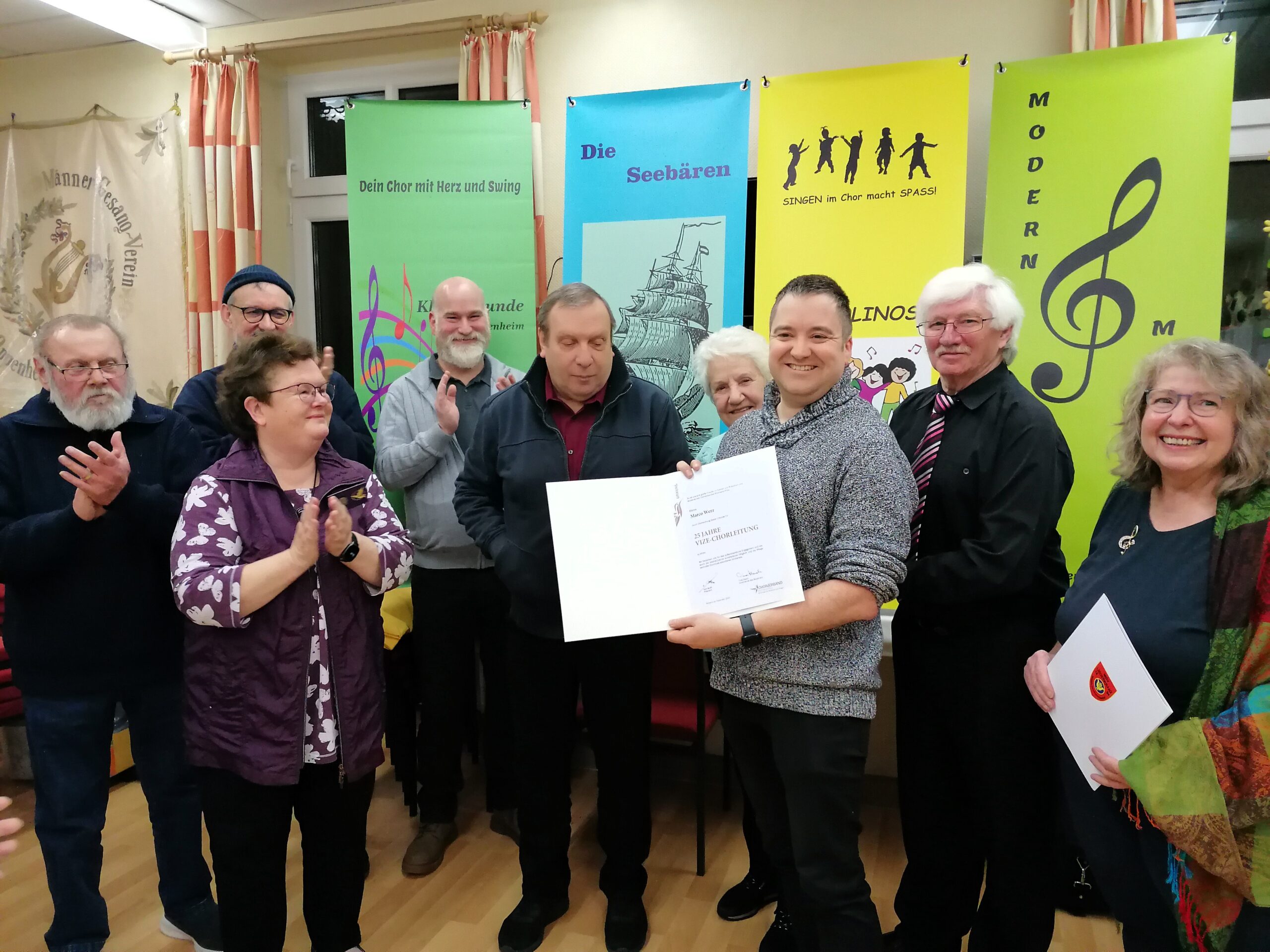 Für 40 Jahre aktives Singen wurden Christine Andres und Gabi Kraus ausgezeichnet. Marco Werz erhielt die Ehrung für 25 Jahre Vizechorleitung. Eine besondere vereinsinterne Auszeichnung erhielt Edgar Andres für seine langjährigen Verdienste: Er wurde zum Ehrenmitglied des Shantychors ‚Die Seebären‘ ernannt. Der Chorverein blickt mit Dankbarkeit auf das Engagement seiner Chormitglieder und startet motiviert in ein neues Jahr mit weiteren chormusikalischen Projekten.