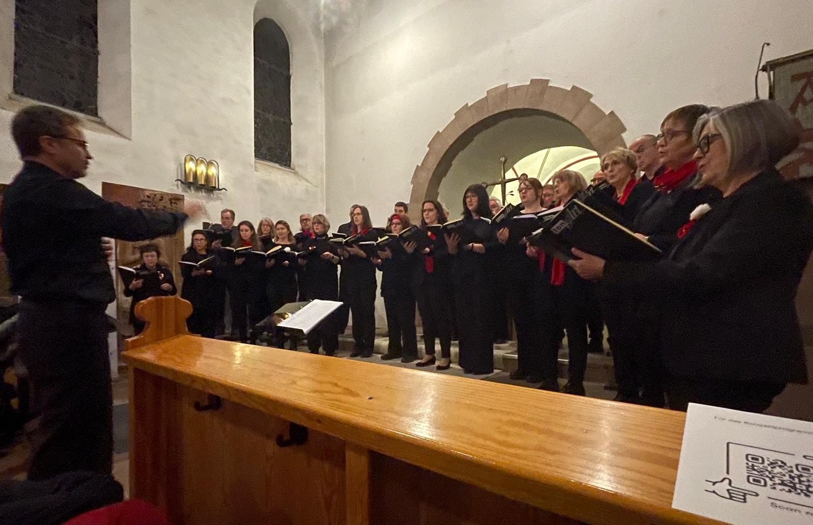 Zum Abschluss sangen Chor und Publikum traditionell gemeinsam ‚O du fröhliche‘. Dieser Moment gemeinschaftlichen Singens erfüllte den Kirchenraum mit spürbarer Verbundenheit. Chorsprecher Markus Bär dankte den Leitungen der beiden Chöre sowie allen Unterstützenden und wünschte ein gesegnetes Weihnachtsfest – in der Hoffnung, dass der Abend zur Einstimmung auf die Feiertage beigetragen hatte.