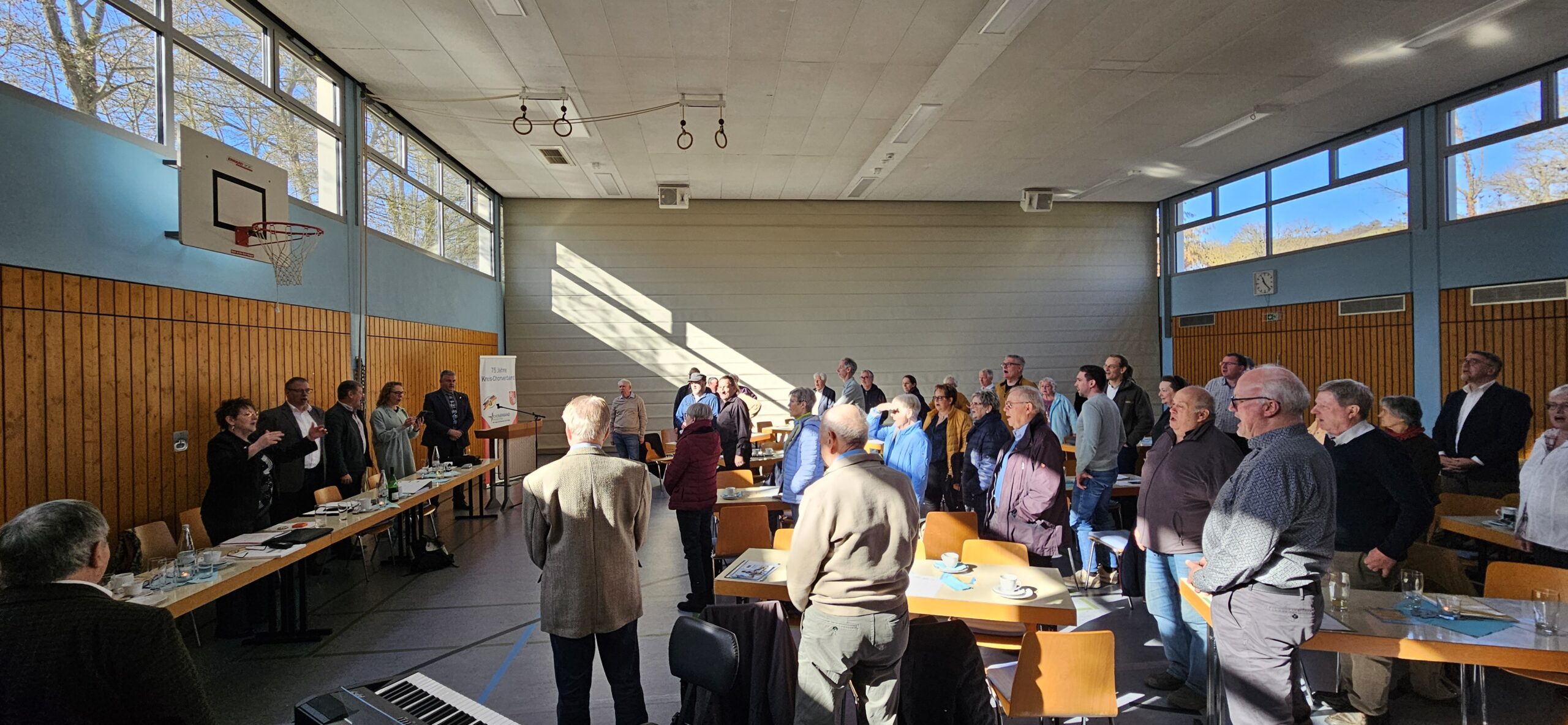 Die Delegierten singen den Sängergruß zum Abschluss der Frühjahrstagung des Kreis-Chorverbands Mainz. Foto: M. Emmerich-Barten