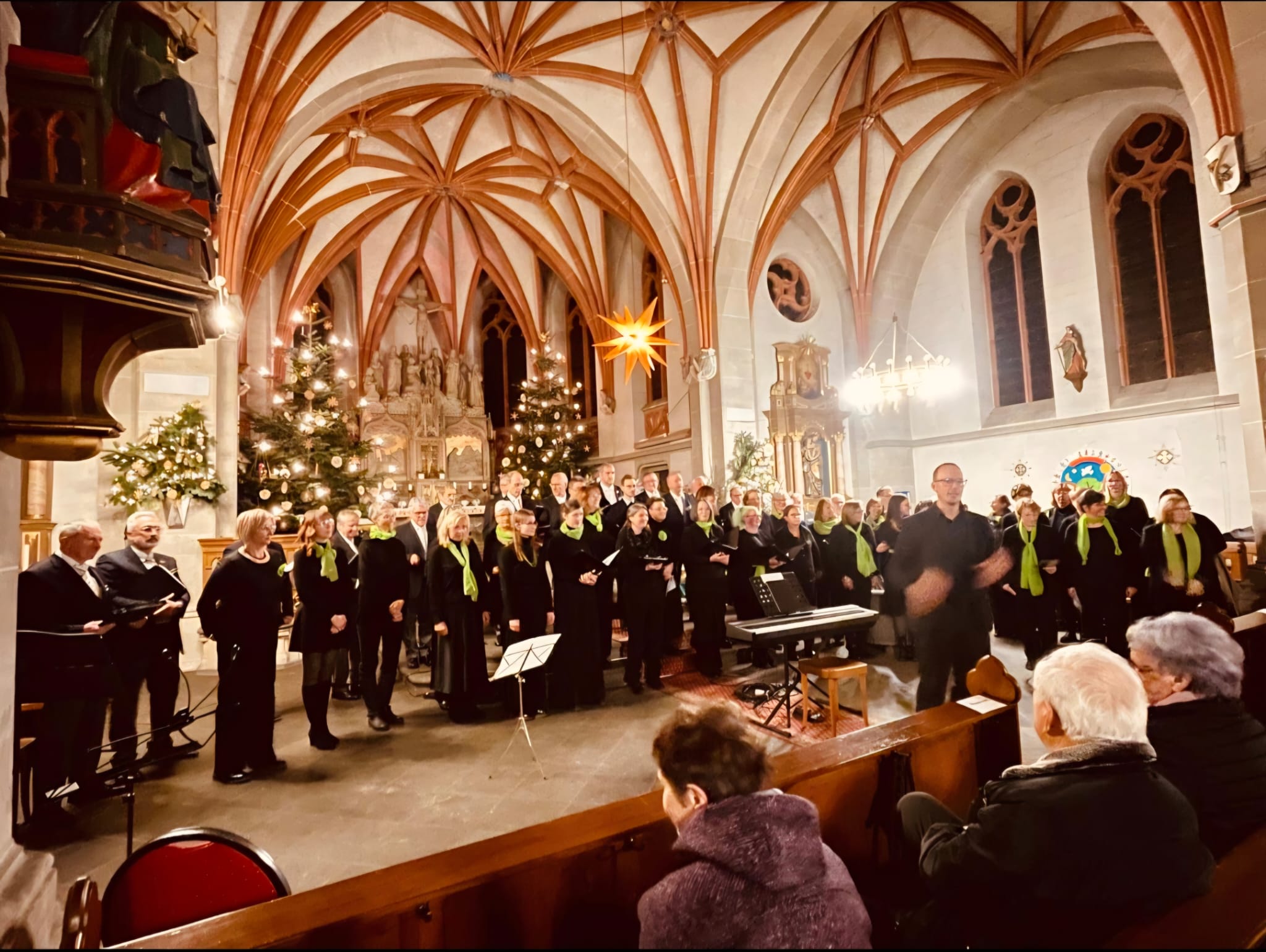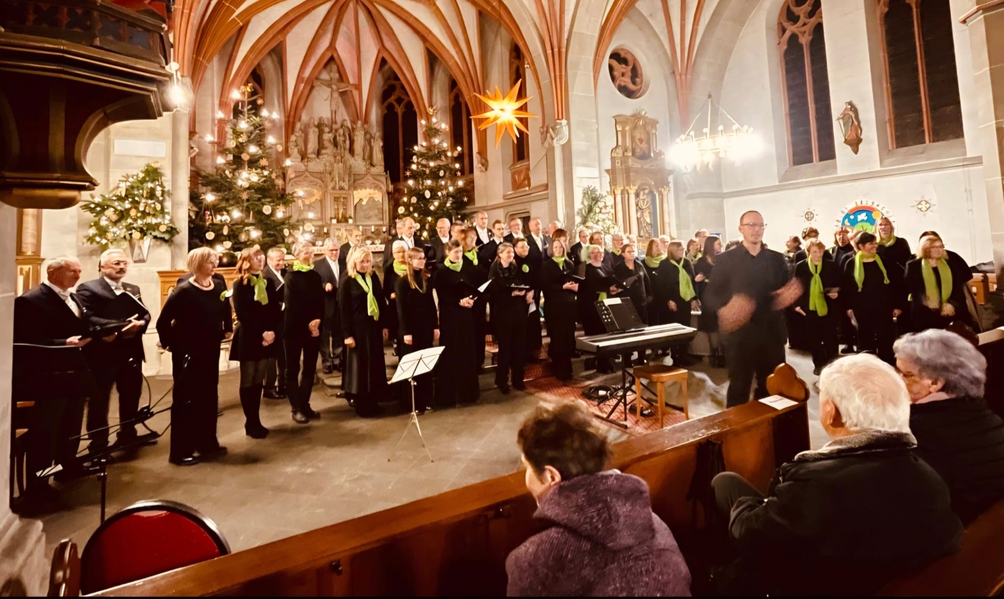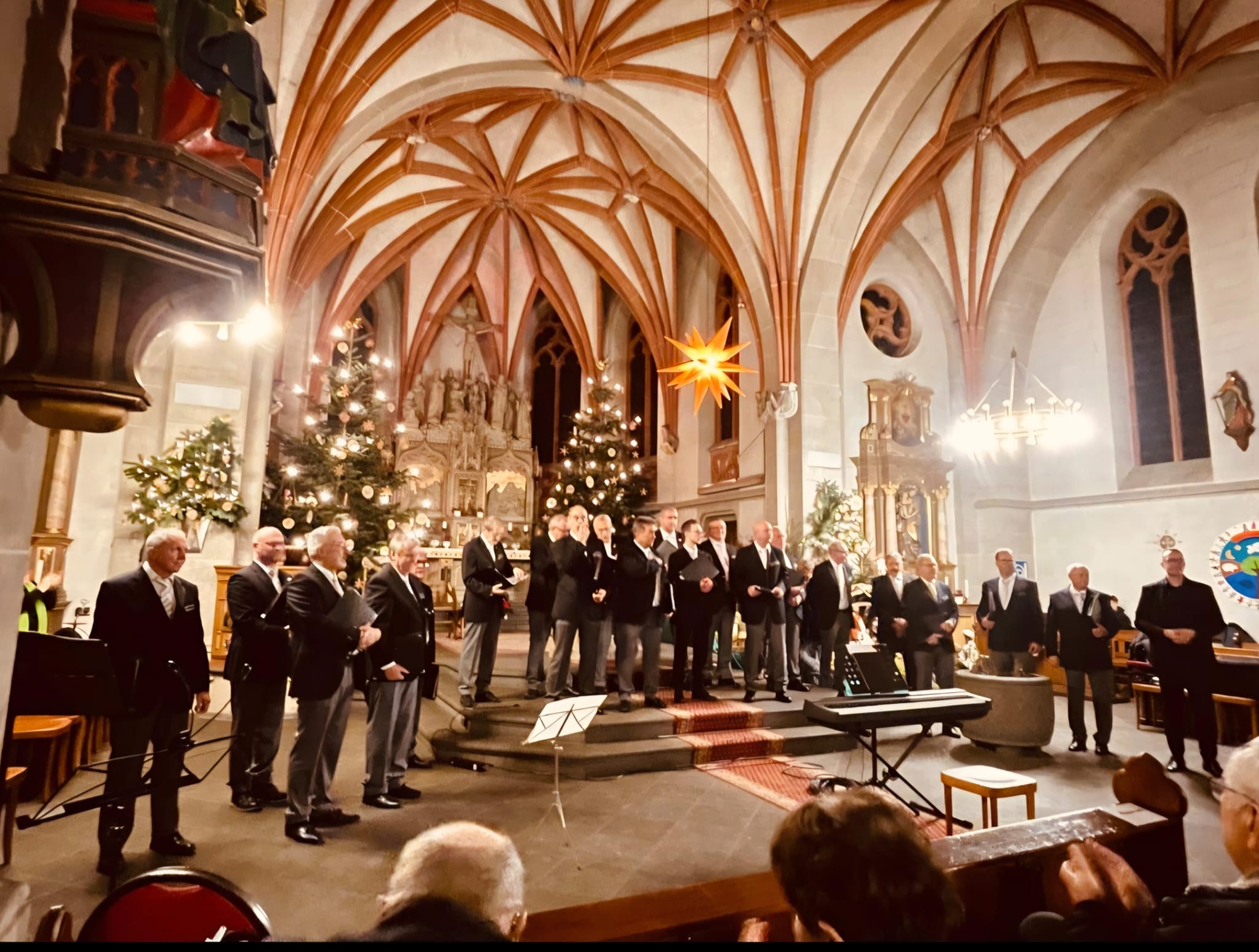 Der Moderator versprach die geforderte Zugabe nach langem Applaus, wenn zuvor das gesamte Publikum zusammen mit den beiden Chören das Lied ‚Abendstille überall‘ als Kanon gesungen habe. Nach kurzer Instruktion durch Kevin Breitbach füllten mehr als 200 Stimmen den Kirchenraum. Als versprochene Zugabe sang der Männerchor anschließend ‚Jerusalem‘, erneut mit Andreas Molitor als Solist. Mit Neujahrswünschen und dem Hinweis auf die offene Probenarbeit des Chores beschloss der MGV-Vorsitzende den gelungenen Konzertabend, der bei vielen Gästen einen nachhaltigen Eindruck hinterließ.