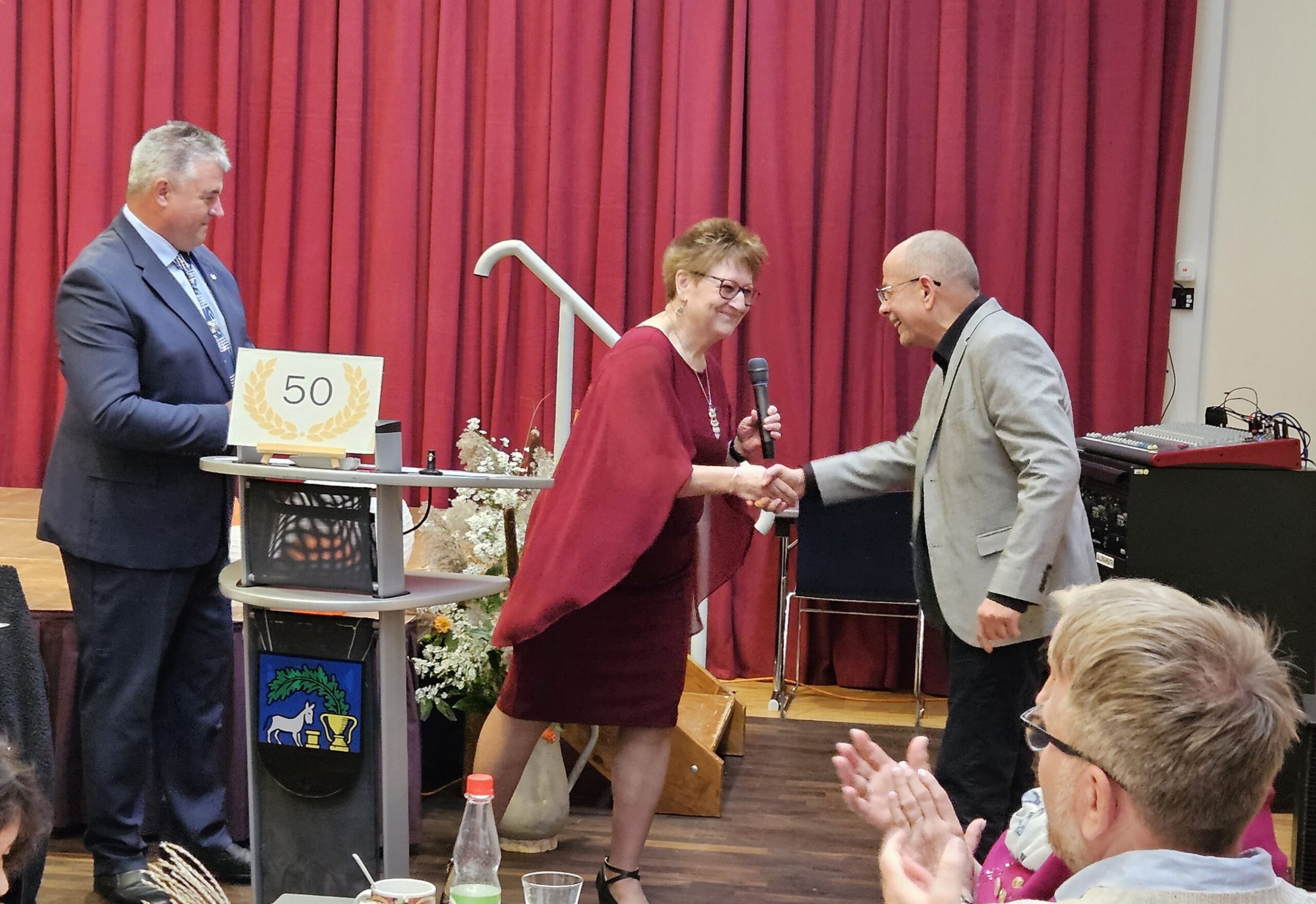 Ein besonderer Höhepunkt war die Ehrung von Michael Voll, Chorleiter des MGV Elsheim, für 50 Jahre Chorleitung. Volls über Jahrzehnte hinweg gelebte Leidenschaft und sein unermüdliches Engagement für die Chormusik würdigte Kreis-Chorleiterin Cornelia Albes in ihrer Laudatio.