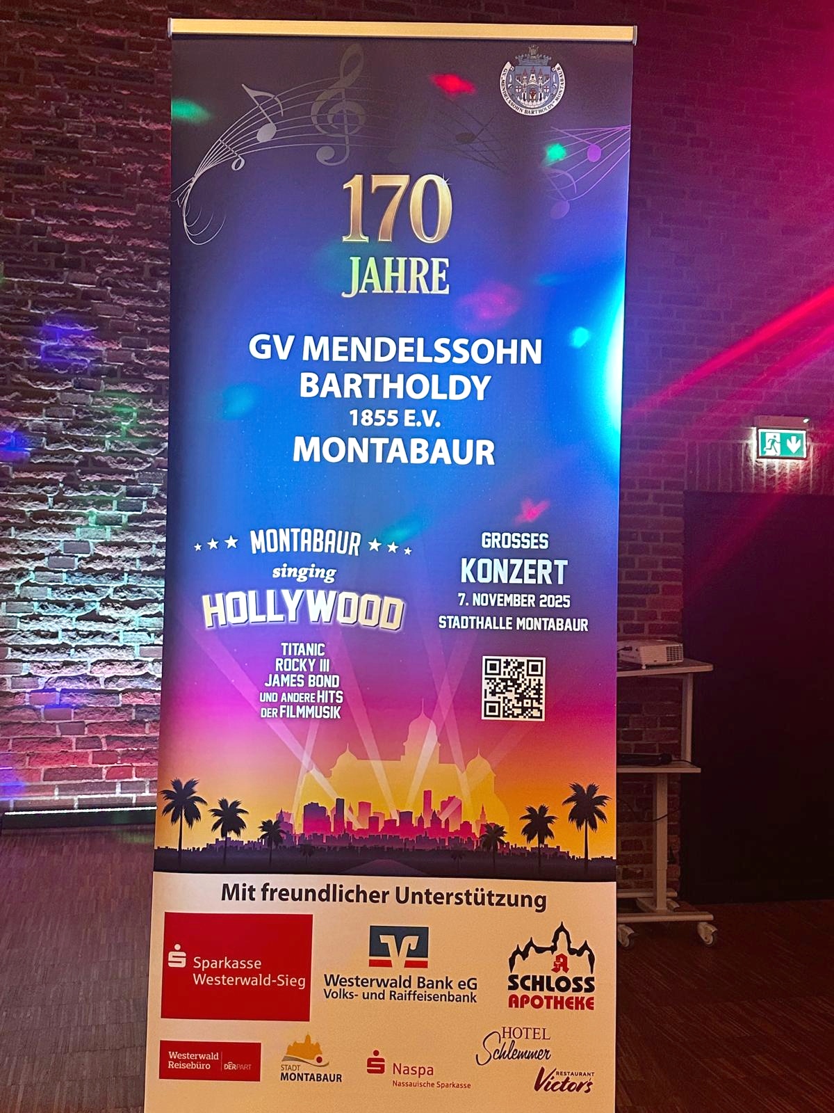 Geschäftsführer Alex Jaß überraschte die Gäste mit einem einminütigen Videoclip, der das bevorstehende Chorkonzert am 7. November in der Stadthalle Montabaur ankündigte. Unter dem Titel ‚Montabaur singt Hollywood‘ soll das Publikum unter der Leitung von Dirigent Dominik Pörtner einen Abend voller musikalischer Glanzmomente erleben. Der Film, unentgeltlich produziert von Ehemann und Tochter einer Sängerin, sorgte beim Publikum für begeisterten Applaus.