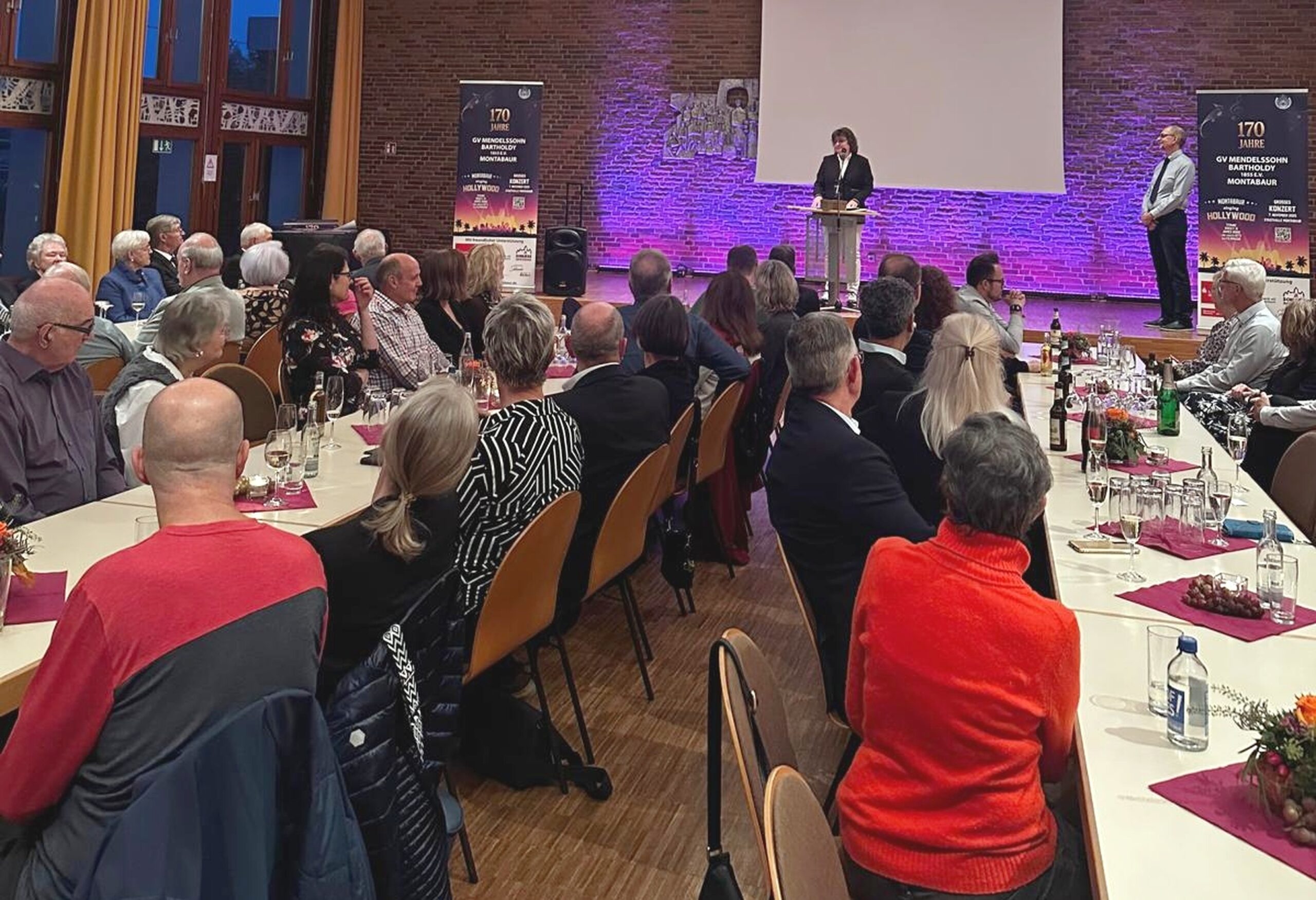Unter den Ehrengästen befanden sich ebenso Stadtbürgermeisterin Melanie Leicher, der erste Beigeordnete der Verbandsgemeinde Montabaur Andree Stein sowie Alfred Labonte, seit vielen Jahren Vorsitzender des Chorverbands Westerwald. Sie würdigten in ihren kurzen Ansprachen das beeindruckende Chorjubiläum, das damit verbundene ehrenamtliche Engagement seiner Mitglieder und die stetige Weiterentwicklung, die den Gesangverein Mendelssohn Bartholdy Montabaur bis heute prägt. Auch ihre mitgebrachten monetären Geburtstagspräsente zur weiteren Unterstützung des Chorvereins unterstrichen die Anerkennung und Wertschätzung für die besondere Gemeinschaftsleistung.