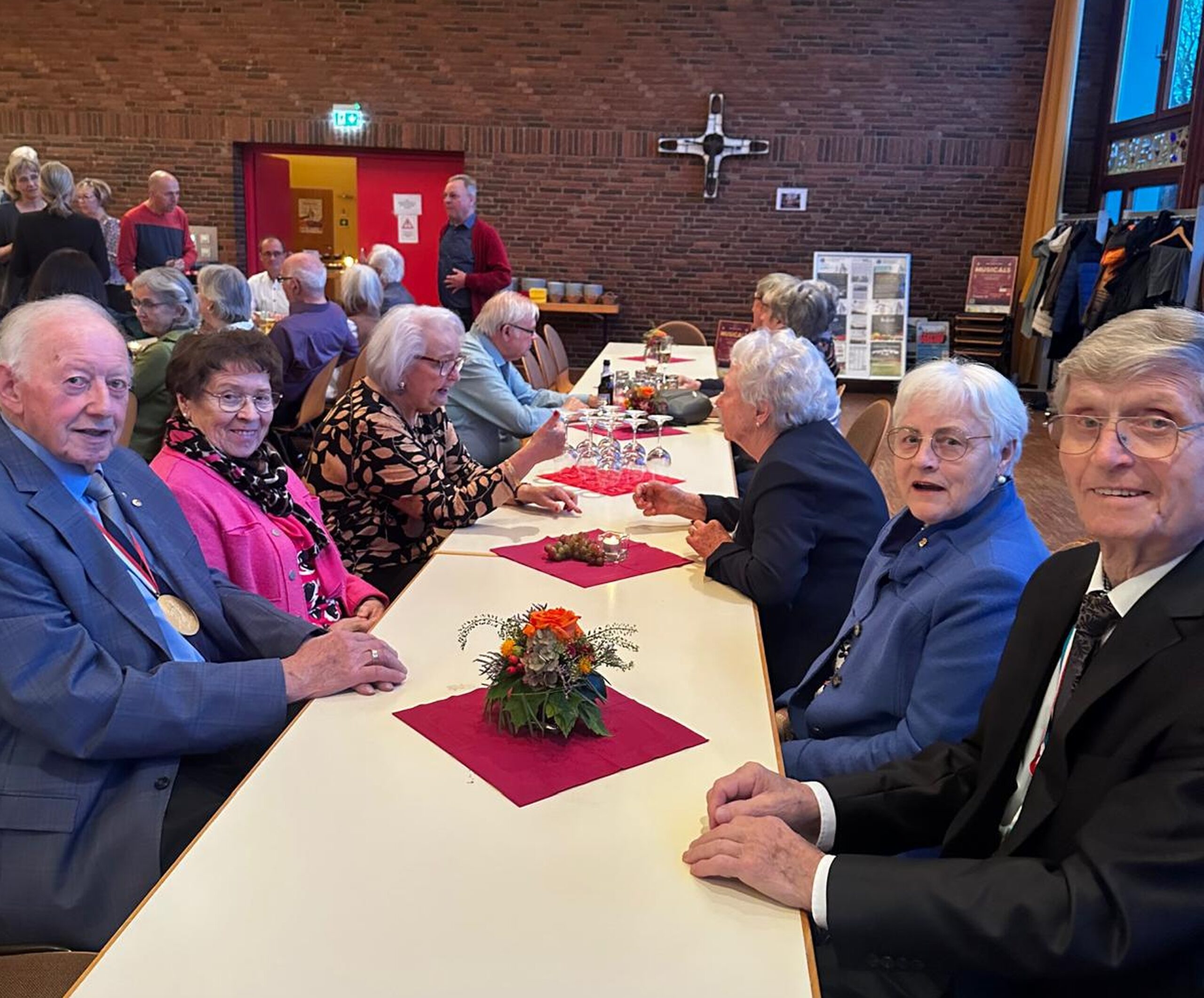In seiner Begrüßung erinnerte Vorsitzender Michael Kien daran und überraschte damit, dass der Chor diese Entwicklung erstmals schon nach einem Jahrzehnt durchlebte. So ist es in der Festschrift zum 50. Geburtstag des MGV aus dem Jahr 1905 nachzulesen, aus der Kien in seiner Begrüßungsansprache zitierte. Er betonte mit einem Augenzwinkern, wie sehr der Chor inzwischen die weiblichen Stimmen zu schätzen wisse: „Wir brauchen euch, wir mögen euch, ihr tut uns gut – und wir haben uns an euch auch schon richtig gewöhnt.“ Sein humorvoller Appell an die anwesenden Sängerinnen, dem Chor dauerhaft treu zu bleiben, unterstrich ein zustimmender, kräftiger Applaus. Zu den Gästen zählten auch ehemalige Mitglieder des früheren MGV, darunter Ehrenvorsitzender Hermann Altenhofen und mehrere Ehrenmitglieder, gemeinsam mit ihren Partnerinnen und Partnern, die „damit ein sichtbares Zeichen der Verbundenheit setzen“, wie der Vorsitzende hervorhob.