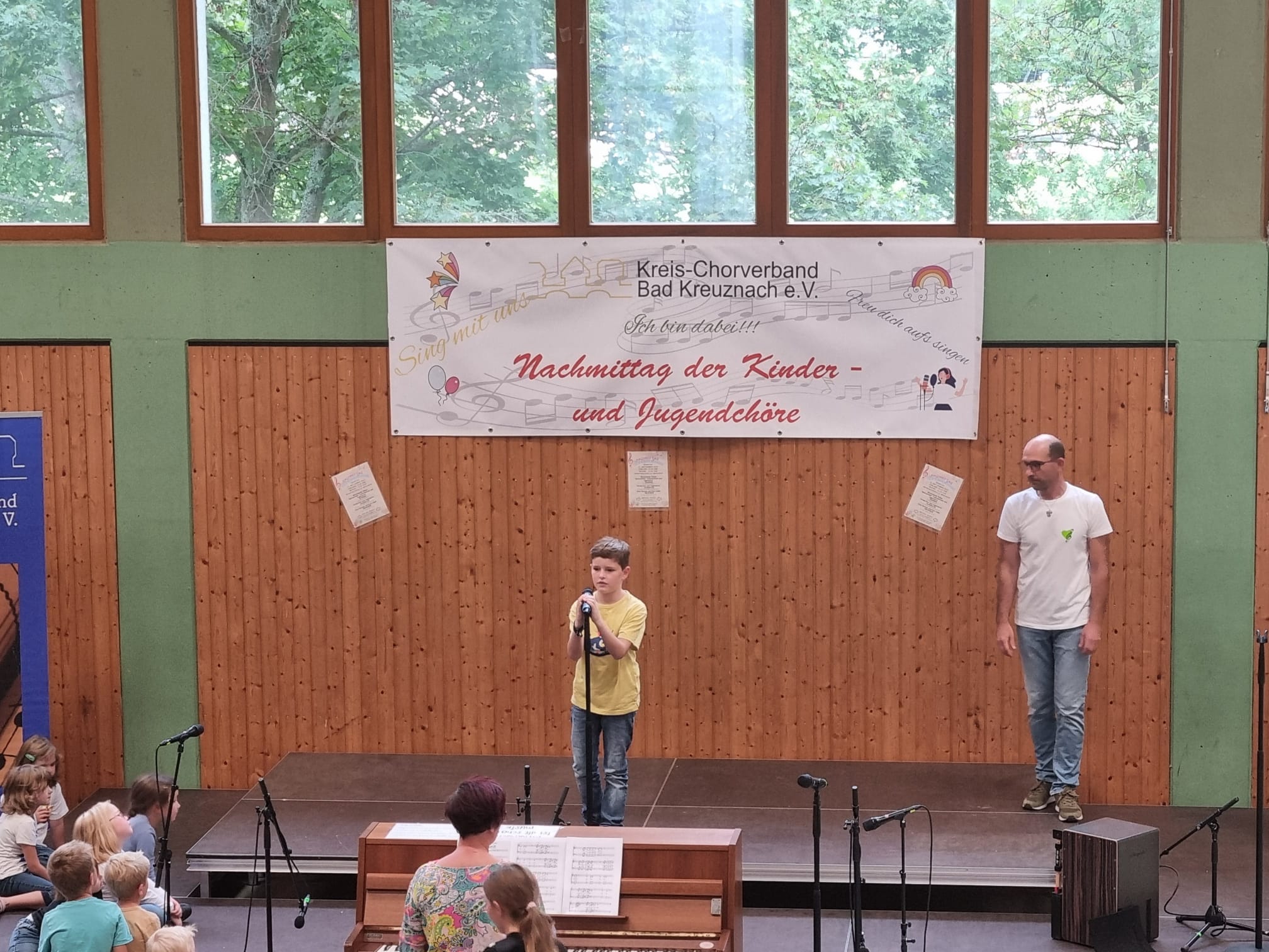 Kico fräsh aus Merxheim übernahm erneut die Bühne und präsentierte mitreißende Lieder wie ‚Bester Freund‘ und ‚Bleiben wir‘. Als sie dann ‚Dorfkinder‘ von Finnel sangen, tobte der Saal, was sich auch im lange anhaltenden Applaus zeigte. Zum feierlichen Abschluss sangen alle Chöre gemeinsam ‚Kinder brauchen Musik‘ von Rolf Zuckowski.