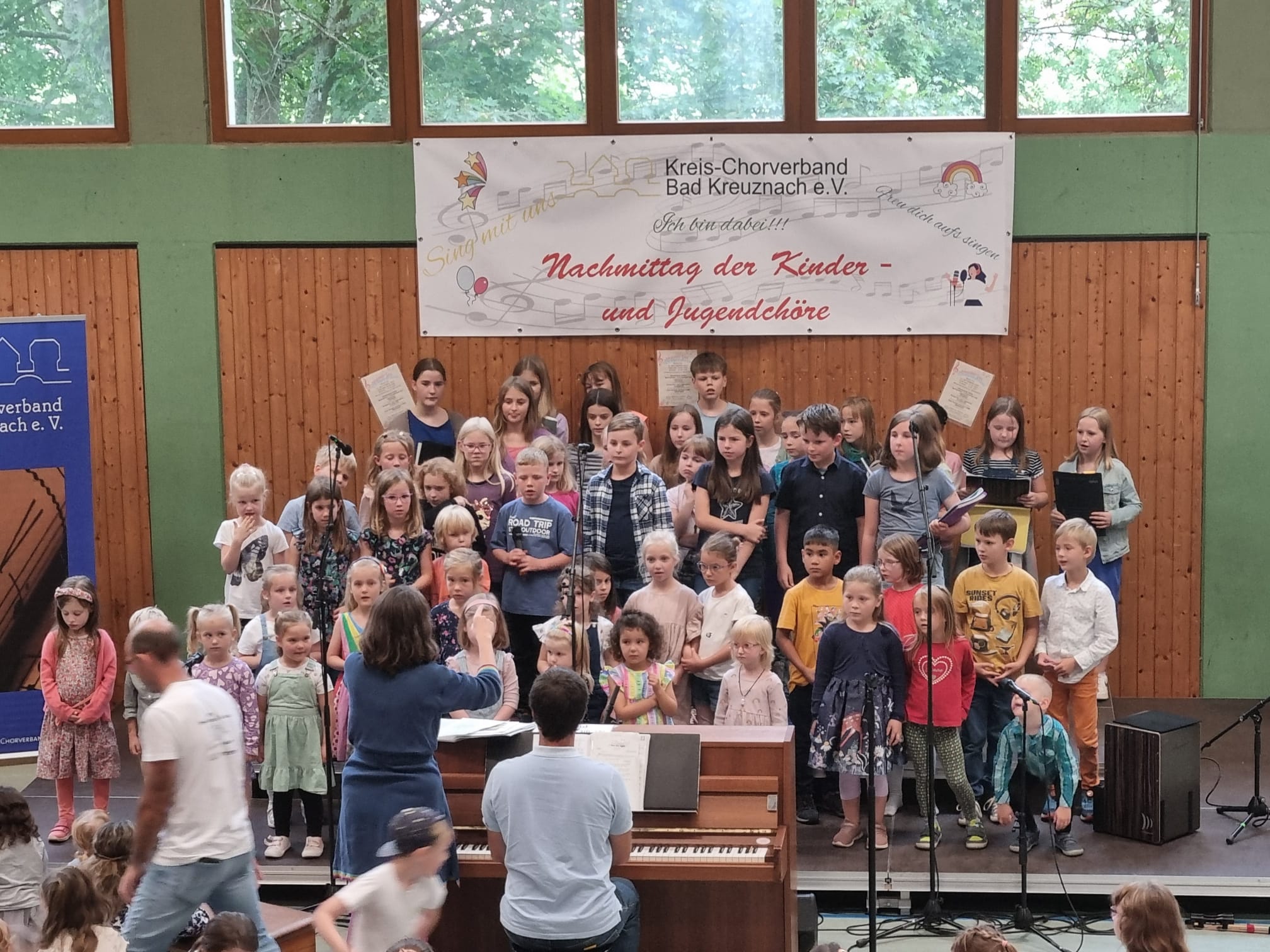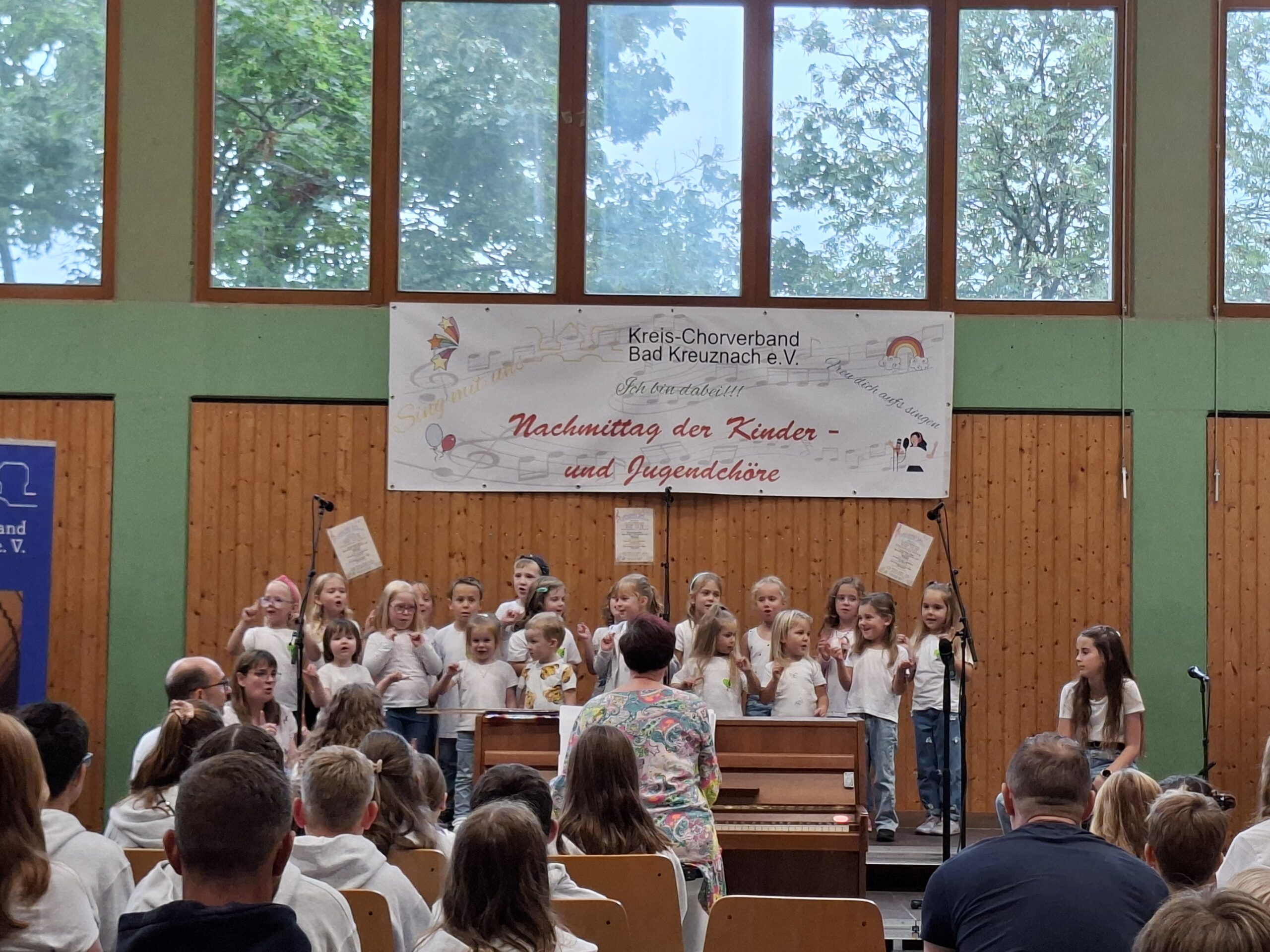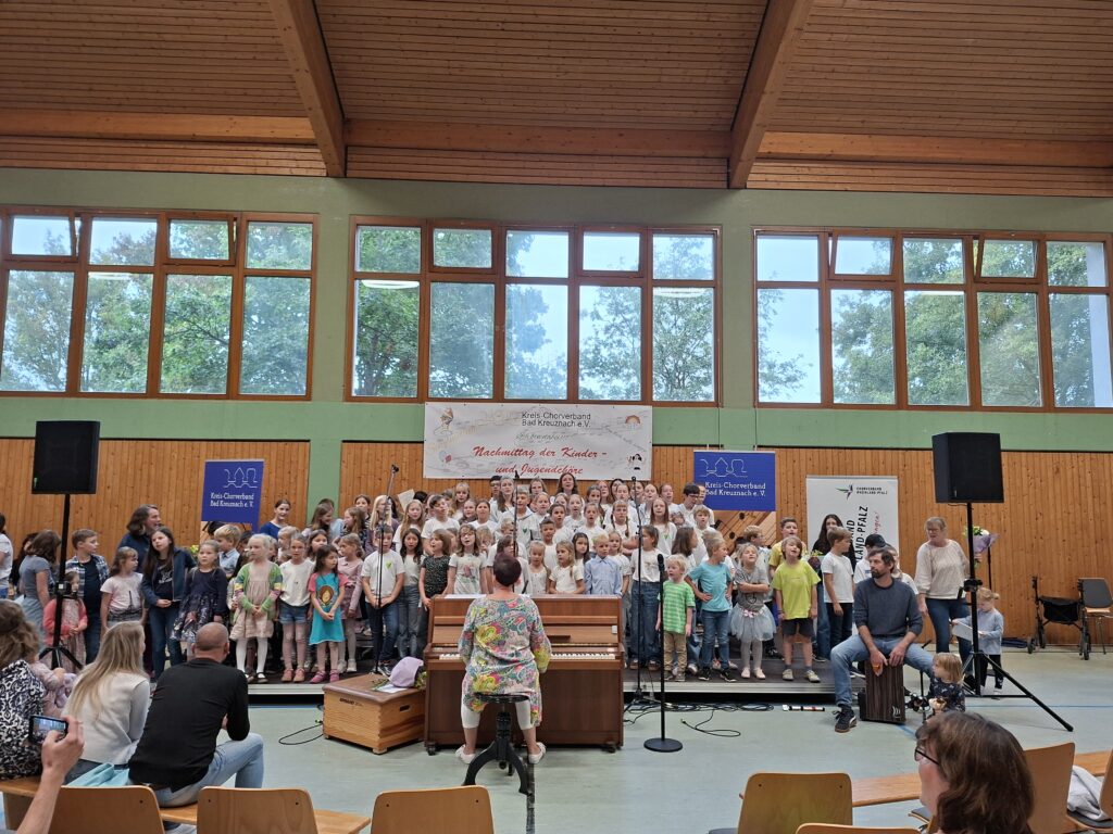 Zum ‚Nachmittag der Kinderchöre‘ hatte der Kreis-Chorverband Bad Kreuznach in die Mehrzweckhalle nach Merxheim eingeladen. Ab 14.30 Uhr präsentierten sieben Kinder- und Jugendchöre ihr Können vor einem so großen Publikum, dass zusätzliche Tische und Stühle aufgestellt werden mussten. Nach der Eröffnungsrede von Jörg Kauffmann, dem Vorsitzenden des Kreis-Chorverbands, sang der ganze Saal gemeinsam ‚Welcome everybody‘ als Begrüßungslied, unter der Leitung von Ramona Wöllstein.