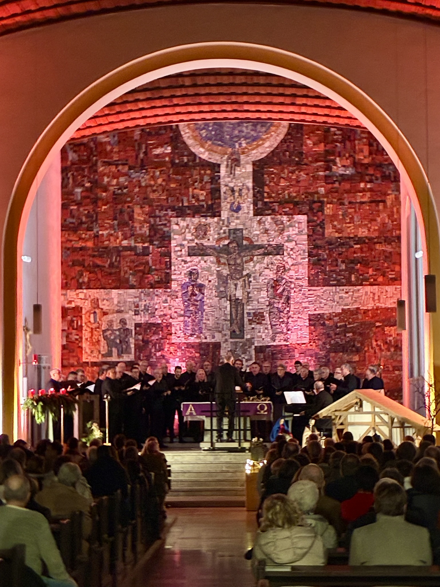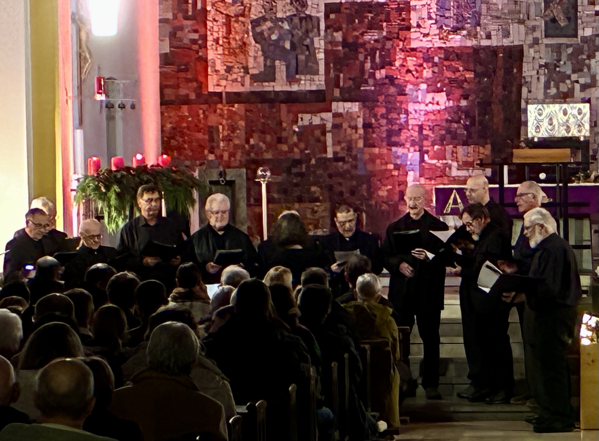 Am Ende des Abends sangen die vier Chöre gemeinsam mit dem Publikum ‚Wir sagen euch an den lieben Advent‘. Dieser Moment des gemeinsamen Singens mit rund 350 Stimmen schuf eine spürbare Verbundenheit im Kirchenraum. Von Gästen und Mitgliedern der Chöre war vielfach zu hören, es habe sich um ein sehr schönes und abwechslungsreiches Konzert gehandelt, das daher auch mit lange anhaltendem Applaus gewürdigt wurde. Der vierte Advent klang anschließend bei einem geselligen Beisammensein in lockerer, weihnachtlicher Atmosphäre aus, begleitet von Glühwein, kleinen Speisen und mit anregenden Gesprächen.
