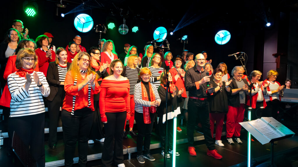 Das Jubiläumskonzert bot einen beeindruckenden Querschnitt durch die vier Jahrzehnte Chorgeschichte. Über 40 Singende standen gemeinsam mit einem Bandsextett auf der Bühne. Neben dem Chor Regenbogen traten auch die kleineren Formationen MissTöne, ein Frauenensemble, die Männerchorgruppe Rachengold und Christelier als gemischte Chorformation auf – Gruppen, die sich aus Mitgliedern des Hauptchores gebildet haben. Für die professionelle Ton- und Lichttechnik sorgte das Team von QuintEvents. Das Ergebnis war ein musikalisches Spektakel, das Publikum und Mitwirkende gleichermaßen begeisterte.