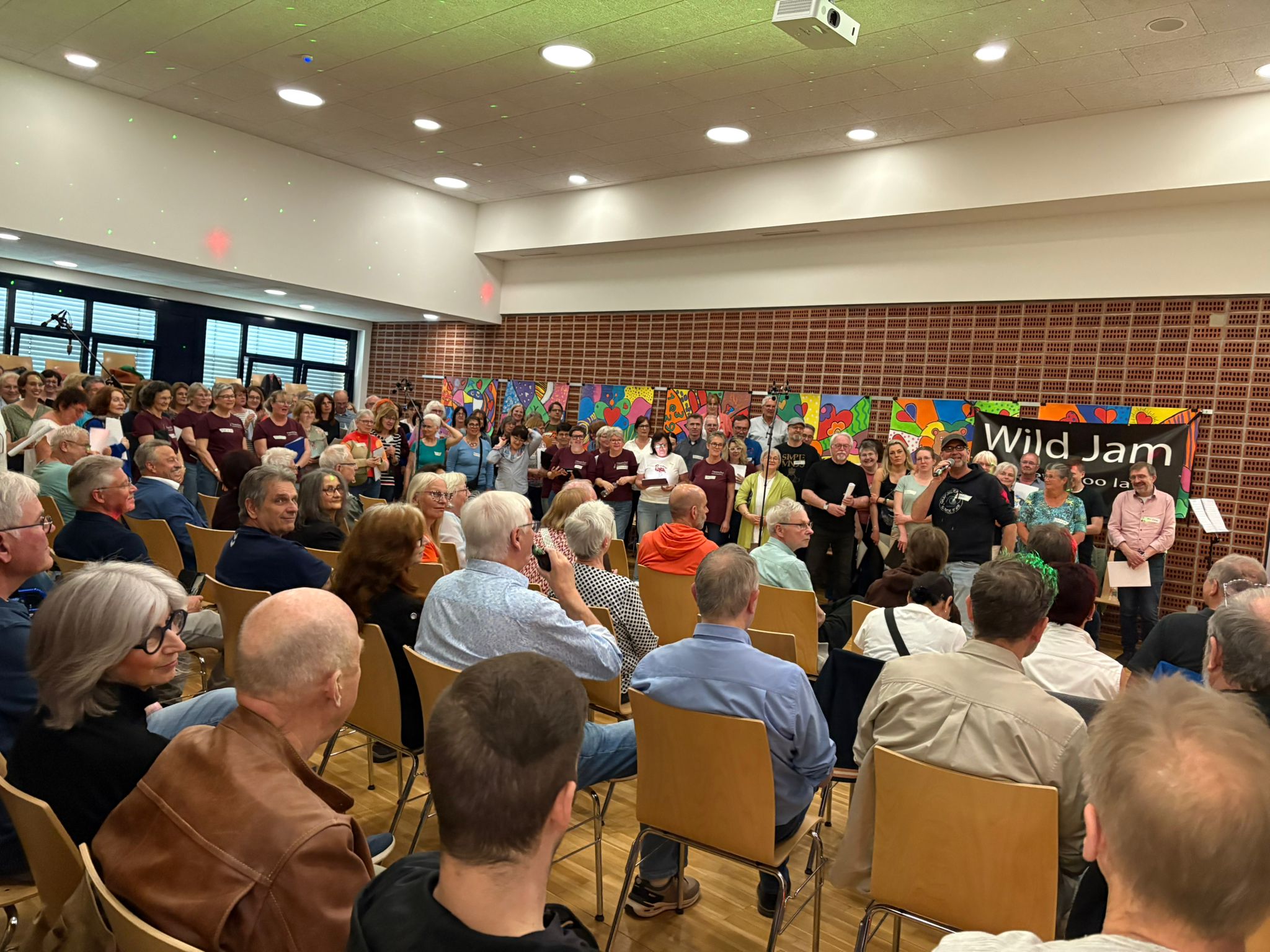 Eine Besonderheit lag in der Zusammenarbeit mit der siebenköpfigen Band ‚Wild Jam‘. So entwickelte sich ein dichter, moderner Chorklang, der sowohl die Singenden als auch die Musiker überzeugte. Das Zusammenspiel von Chor und Band gab den Stücken zusätzliche Dynamik und Präsenz.